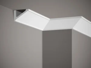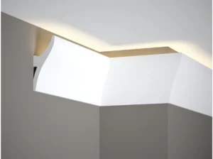 Cornișa pentru iluminat MDB100 are un profil neted, cu o curbură subtilă către tavan, oferind un efect de iluminare elegant în combinație cu o bandă LED. Fabricată din plastic ProFoam ușor și impermeabil, cornișa este ideală pentru a crea o atmosferă rafinată și modernă în orice încăpere. Designul simplu și curbat contribuie la un iluminat indirect plăcut, potrivit atât pentru spații rezidențiale, cât și comerciale.