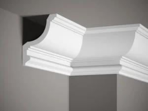 Plinta pentru tavan MDB131 este un profil modern, de dimensiuni mari, cu o secțiune transversală ce amintește de forma unui triunghi. Fabricată din poliuretan ProFoam ușor, această cornișă se distinge prin rezistența sa la radiațiile UV și apă, asigurând durabilitate și un aspect impecabil în timp.