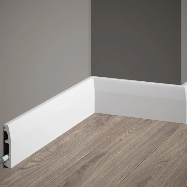 Plinta MD016 este un design original care va completa perfect interioarele moderne. Totuși, calitatea și durabilitatea superioară a produsului o fac potrivită pentru instalarea în orice cameră. Plinta este rezistentă la apă și razele UV, astfel că poate fi utilizată chiar și în bucătărie sau baie. Vapourii de apă nu vor cauza umflarea materialului, iar expunerea prelungită la soare nu va modifica nuanța plintei. MD016 dispune de un spațiu dedicat pentru ascunderea cablurilor inestetice și pentru banda LED. Datorită tehnologiei inovative LightGuard, plinta poate fi utilizată cu iluminat LED fără a-ți face griji cu privire la apariția punctelor de lumină prin material.