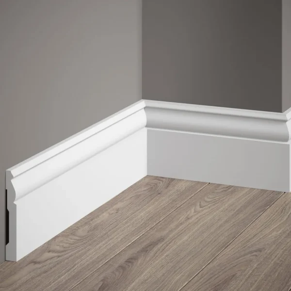 Plinta MD095 este un profil elegant, cu un design distinctiv și atrăgător. Este complet rezistent la apă, ceea ce o face ideală pentru instalarea în încăperi cu umiditate ridicată, precum băi și bucătării. MD095 reflectă eficient lumina soarelui, fără a provoca îngălbenirea, decolorarea sau schimbări ale structurii materialului. Parametrii tehnici de înaltă calitate, împreună cu tehnologia ScratchShield, fac plinta extrem de rezistentă la factori externi, precum zgârieturi și impacturi. Plinta dispune de un spațiu special pentru ascunderea cablurilor inestetice, iar suprafața sa a fost protejată cu un primer de înaltă calitate, care netezește plinta și o pregătește pentru aplicarea unor straturi de vopsea pe bază de apă.