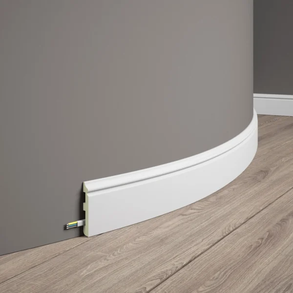 Plinta flexibilă MD234F este un stucco premium, cu un design de impact, clasic și minimalist. Acest profil nu are ornamentații sau frezări, iar designul său este ușor rotunjit în partea superioară. Plinta flexibilă MD234F este un stucco de înaltă tehnologie care îți oferă posibilitatea de a îndoi profilul după forma suprafeței. Datorită acestui lucru, acest decor este ideal pentru a fi montat pe orice tip de piloni sau profile în zona plintei.