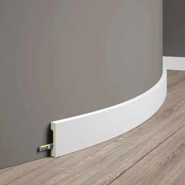 Plinta este finisată din fabrică cu un grund special care asigură o suprafață netedă, protejată și pregătită pentru aplicarea ulterioară a straturilor de vopsea. Pentru un efect vizual perfect, recomandăm utilizarea unei vopsele pe bază de apă după instalare.