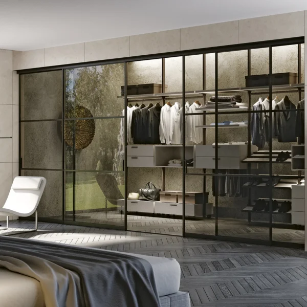 Plana Easy, parte din colecția Sistemi di Design de la Bertolotto, este concepută pentru a oferi flexibilitate și eleganță în amenajările interioare. Aceasta combină un sistem glisant suspendat, care permite montarea la exteriorul peretelui, cu materiale premium precum aluminiu și sticlă securizată sau stratificată.
