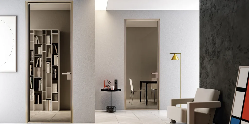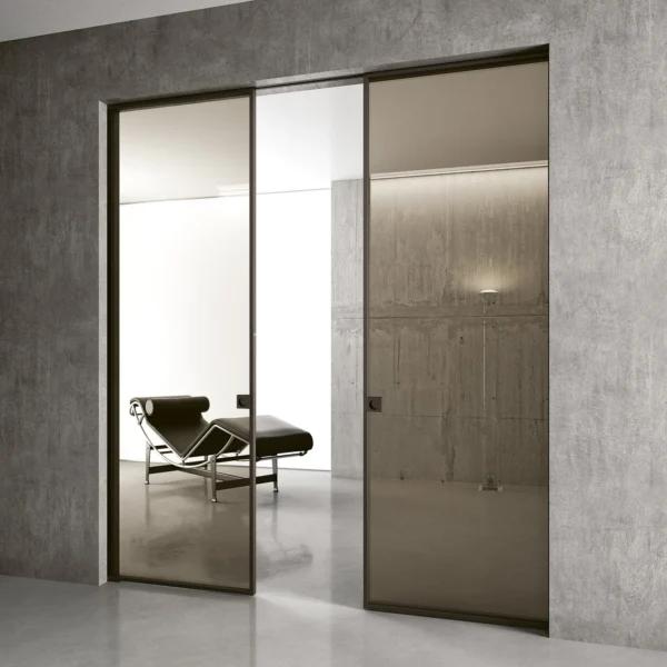 Cadrul minimalist din aluminiu și opțiunile extinse de personalizare permit integrarea perfectă a ușii în orice stil de design interior, fie că este vorba despre spații rezidențiale, comerciale sau de birouri.